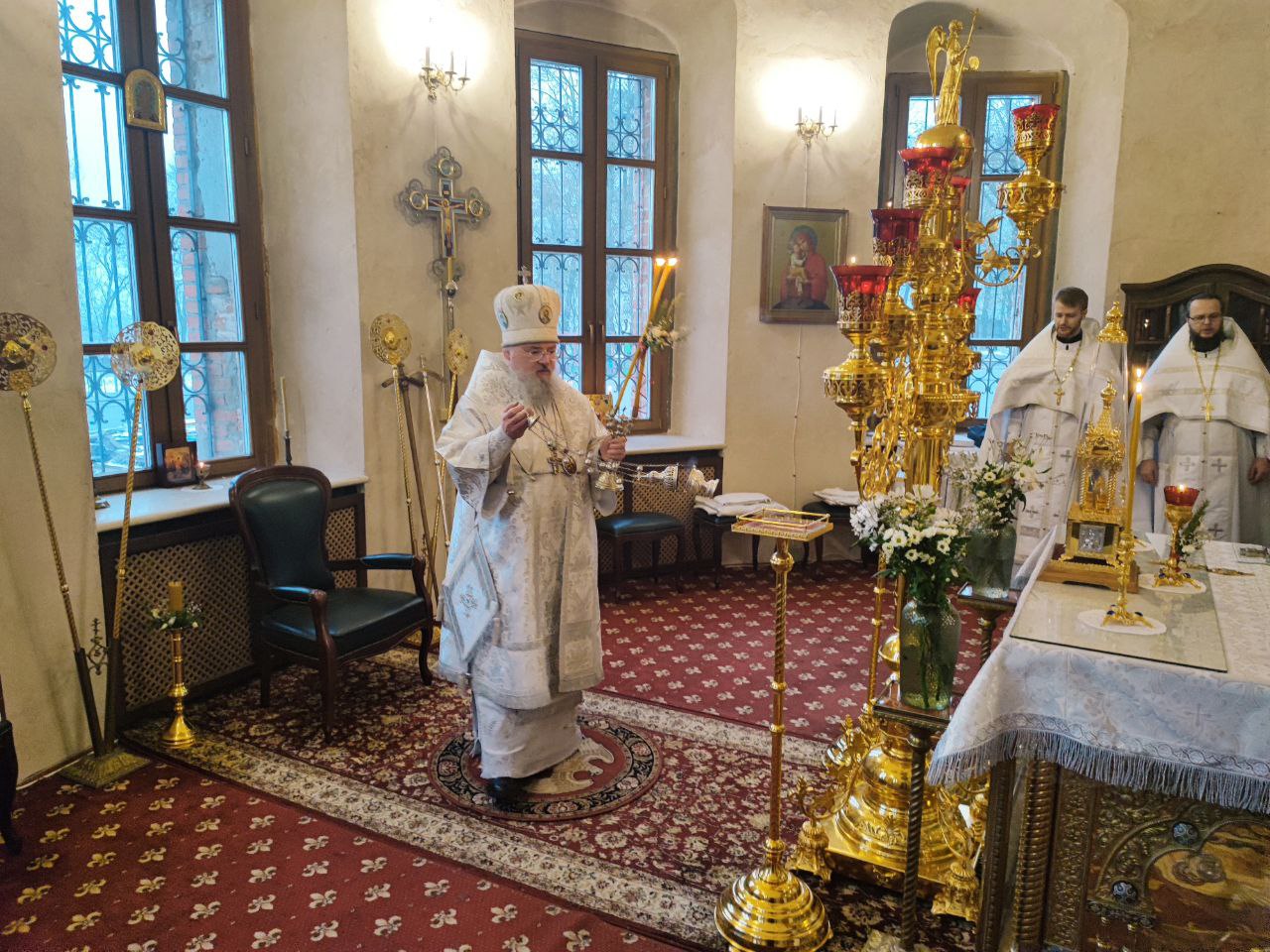 Преосвященному владыке сослужили: иеромонах Паисий (Курмаз) настоятель собора, протоиерей Антоний Хатунцев, иерей Елисей Тимофеев и диакон Евгений Ковригин.
