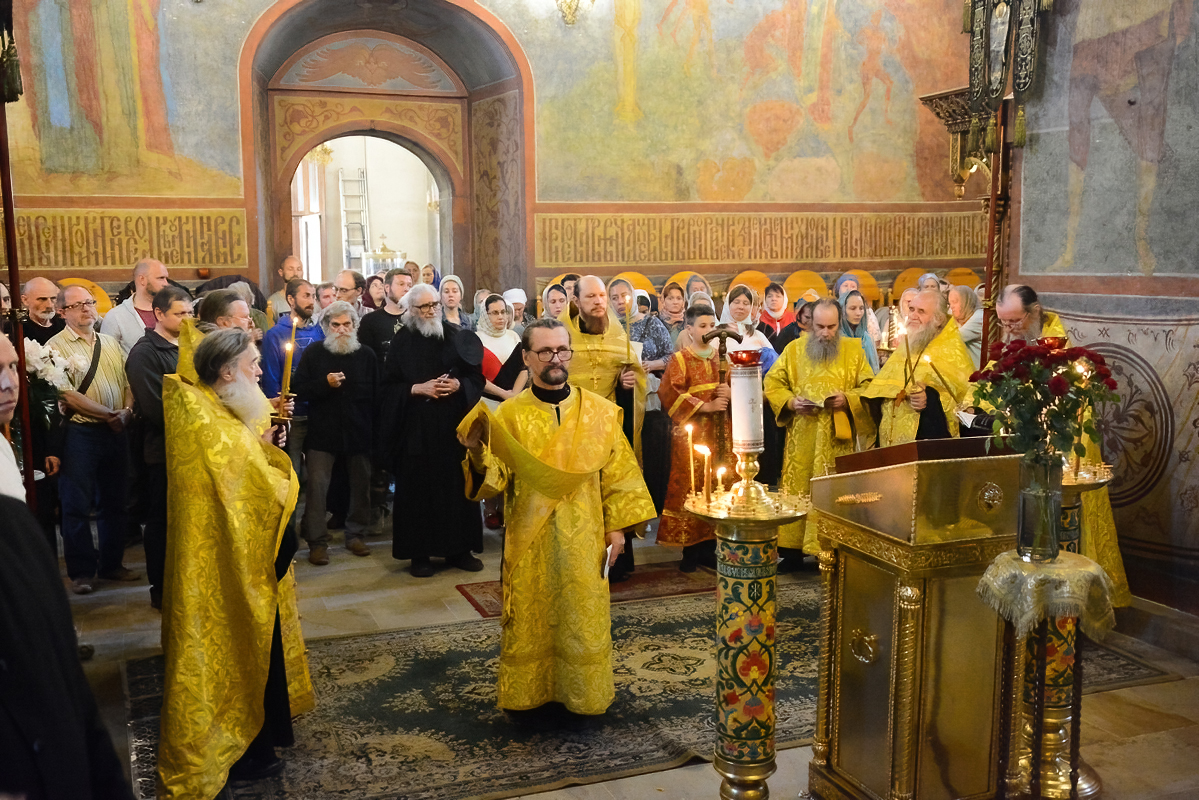 24 июня после воскресного всенощного бдения по благословению наместника обители в Пафнутиевом монастыре прошел соборный молебен иконе Божией Матери "Державная", архистратигу Михаилу, великомученику Георгию Победоносцу и прп.