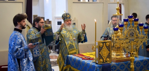 За богослужением митрополит Климент вознес молитву о Святой Руси. По благословению Патриарха Кирилла сугубая молитва совершается во всех храмах Русской Православной Церкви.