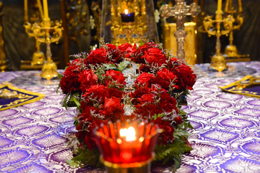 В канун Недели Крестопоклонной в Пафнутиевом Боровском монастыре прошло всенощное бдение. Богослужение возглавил наместник обители игумен Пафнутий в сослужении священнослужителей монастыря. По уставу полиелей прошел в алтаре. После прочтения канона, пения стихир и Великого славословия, украшенный живыми цветами Крест был торжественно вынесен в храм для поклонения. После пения "Кресту Твоему поклоняемся, Владыко..." и поклонения Кресту, отец наместник совершил помазание.