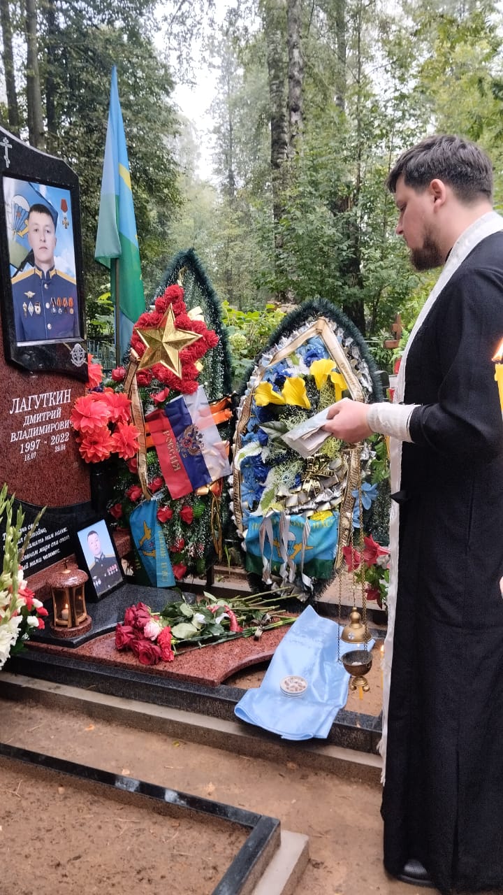 29 августа клирик Свято-Лазаревского храма иерей Иоанн Майоров отслужил панихиду у могилы Дмитрия Лагуткина, который год назад погиб в зоне специальной военной операции на территории Украины.