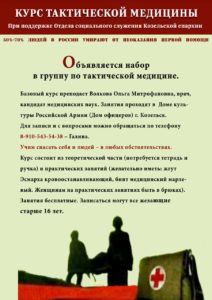 Отдел по социальному служению Козельской епархии приглашает на занятия по тактической медицине