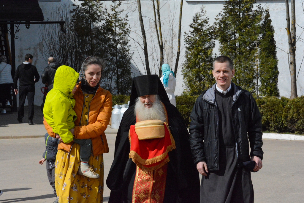 По традиции на Пасху братия Пафнутиева монастыря поздравляет наместника с праздником. По окончании Поздней литургии братия совершили Последование артоса на Пасху, после чего отец Пафнутий пригласил всех в храм Рождества Христова. После пения пасхальных песнопений отец благочинный от лица братии поздравил наместника с праздником Пасхи. В качестве символического подарка отец Сергий преподнес отцу Пафнутию чайный сервиз. В свою очередь отец Пафнутий поблагодарил братию за поздравление, а также за терпеливое несение своего жизненного и монашеского креста. Отец Пафнутий говорил о скорбях, о их спасительном значении и необходимости терпеливого перенесения всего случающегося в жизни. В конце братия приняли от отца наместника благословение и символические подарочные наборы.