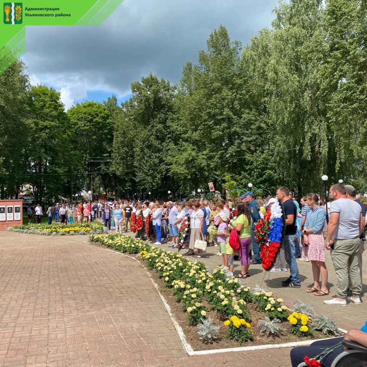Председатель Калужской областной организации ветеранов, военный комиссар военного комиссариата Хвастовичского и Ульяновского районов, гвардии-подполковник запаса Игорь Викторович Черкасов, командир поискового отряда «Память» города Стрежевой Томской области Марат Ташибаевич Санаев, настоятель храма Воскресения Христова протоиерей Максим Садовников, а также ветераны, гости и многочисленные жители района. После торжественных слов был открыт памятник Летчикам погибшим во время Великой Отечественной войны на Ульяновской земле. Священник возгласил «Вечную Память». Прозвучал метроном «Минутой Молчания», но все были рады освобождению района, которое состоялось 80 лет назад. В этот день, на площади районного центра, было много радостных мероприятий: концерты, развлечения, детские аттракционы.