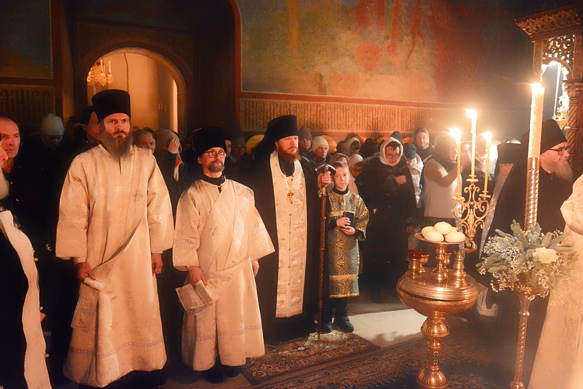 7 января Православная Церковь отмечает праздник Рождества Христова. Накануне праздника 6 января в Пафнутиевом монастыре прошло всенощное бдение, состоящее из великого повечерия с литией, утрени и 1 часа.