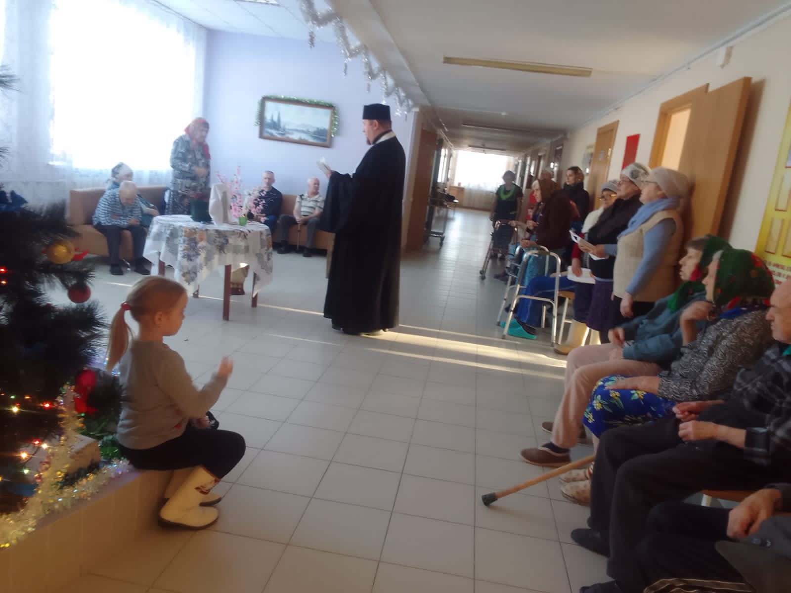 В Рождественский сочельник 6 января настоятель храма в честь «Калужской» иконы Божией Матери в поселке Еленский Хвастовичского района Козельской епархии иерей Павел Мещеряков совершил молебен в доме ветеранов и инвалидо