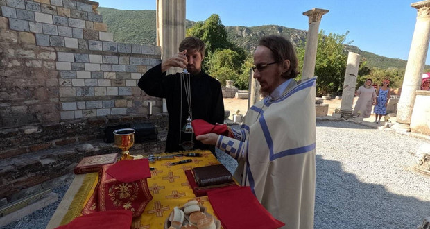 По окончании Литургии священник Георгий Сергеев обратился к верующим со словом, в котором разъяснил догматы III Вселенского Собора. Священнослужитель поблагодарил Министерство культуры и туризма Турции за разрешение на совершение богослужения в храме Пресвятой Богородицы, расположенном в городе-музее Эфес, а также председателя Русского общества культуры имени А.И. Солженицына Андрея Пономарева за помощь в организации паломничества верующих.