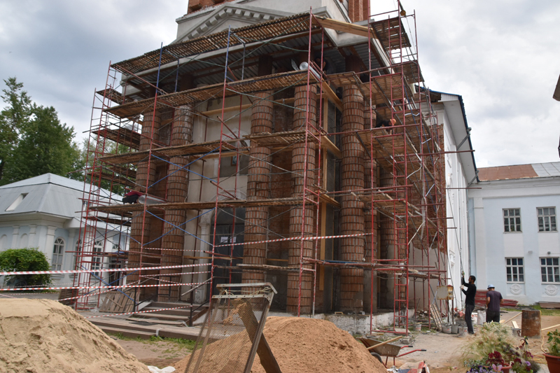 Начались отделочные работы колокольни главного соборного храма Людинова. На пожертвования благотворителей выросли "леса" вокруг колокольни и фирма индивидуального предпринимателя Владимира Самарского приступила к оштукатуриванию стен колокольни. Строители уже имеют опыт в работах на подобных объектов.