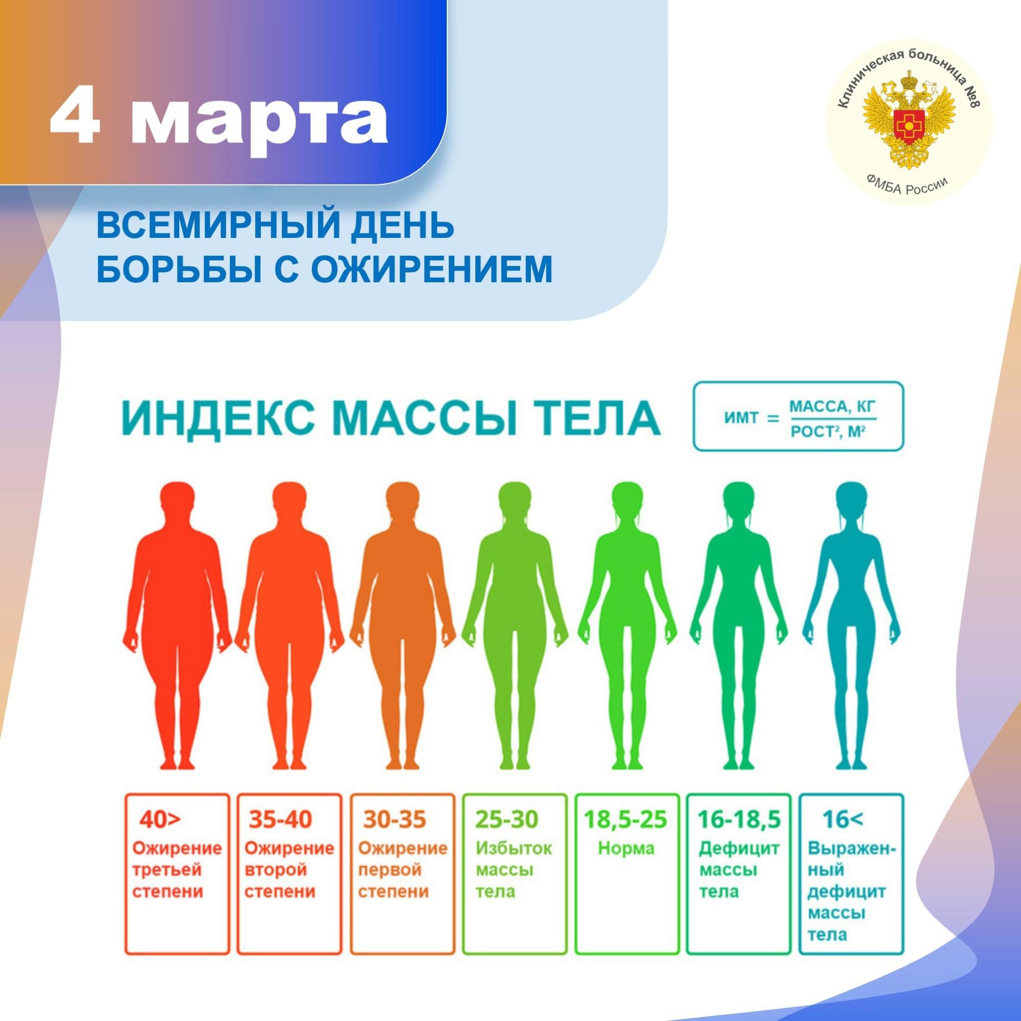 Формула: ИМТ = вес (кг) ÷ (рост в м)²