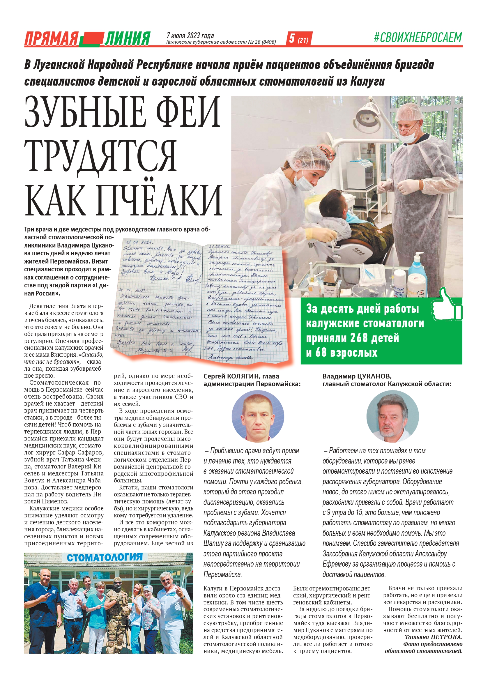 «Калужские губернские ведомости» о работе объединённой бригады сотрудников ГАУЗ КО КОКСП и ГАУЗ КО КОДСП в Первомайске Луганской Народной Республики.