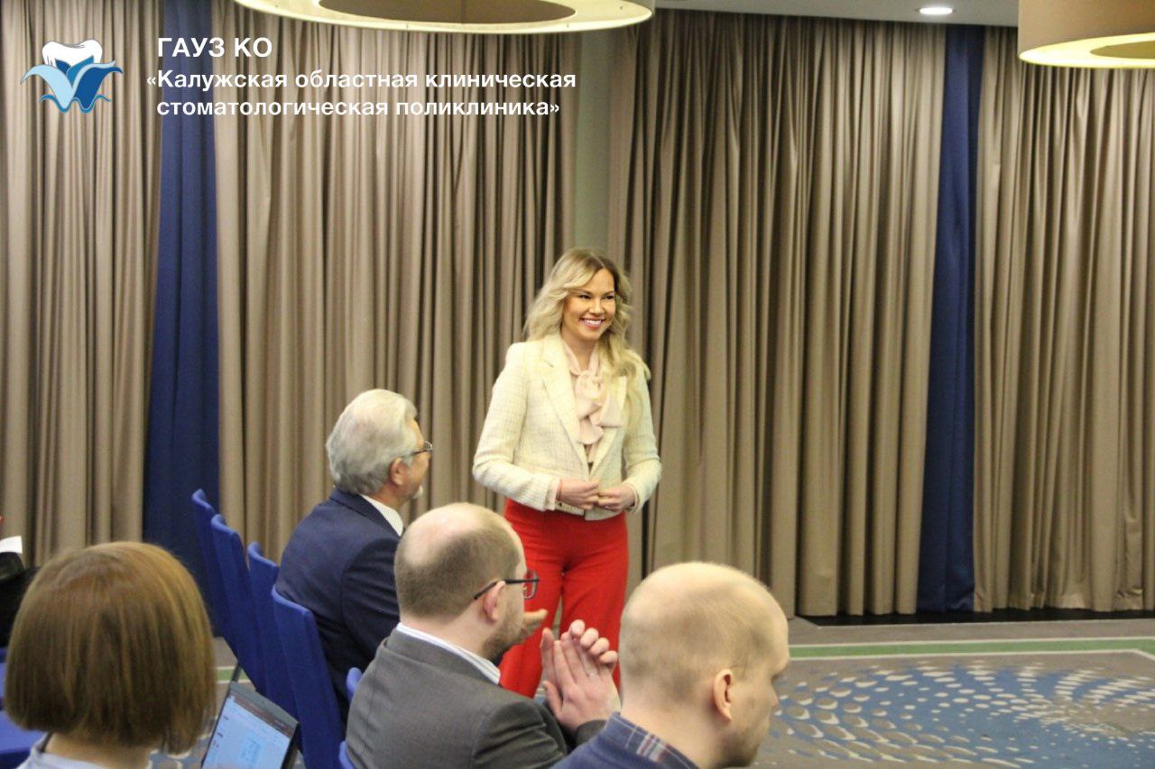 С приветственным словом выступили главный внештатный стоматолог министерства здравоохранения Калужской области, главный врач ГАУЗ КО КОКСП, Заслуженный врач РФ Цуканов Владимир Сергеевич и врач-онколог хирургического отделения ГБУЗ КО КОКОД Данилов Николай Васильевич.