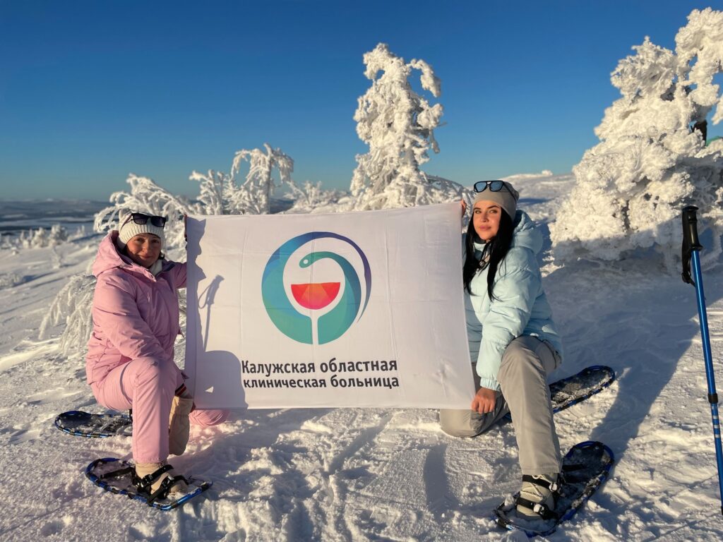 Работники отделения лучевой диагностики Ксения Савосина и Полина Чупрунова покорили Беломорье. Там женщины развернули флаг больницы, в которой работают.