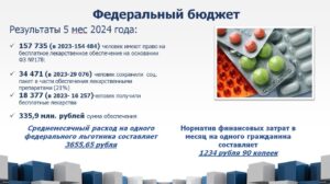 В рамках федеральной льготы имеют право на бесплатное лекарственное обеспечение на основании федерального закона № 178 более 157 тысяч человек, из них более 34 тысяч человек сохранили социальный пакет и не получают деньги вместо лекарств. На основании Постановления Правительства № 890 более 88 тысяч человек имеют право на льготы, из них