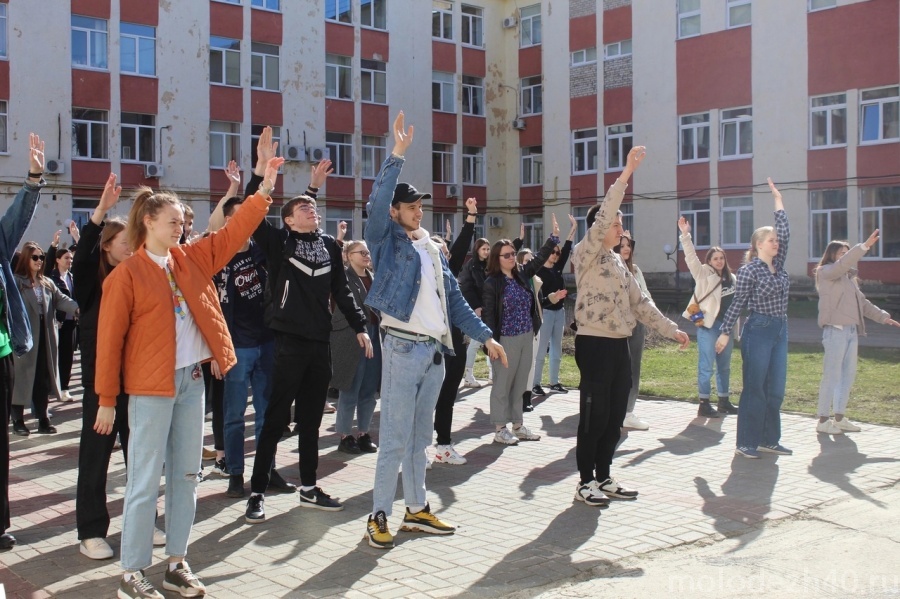 Студенты КГУ им. К.Э. Циолковского вышли на площадку и провели зарядку и зарядились энергией.