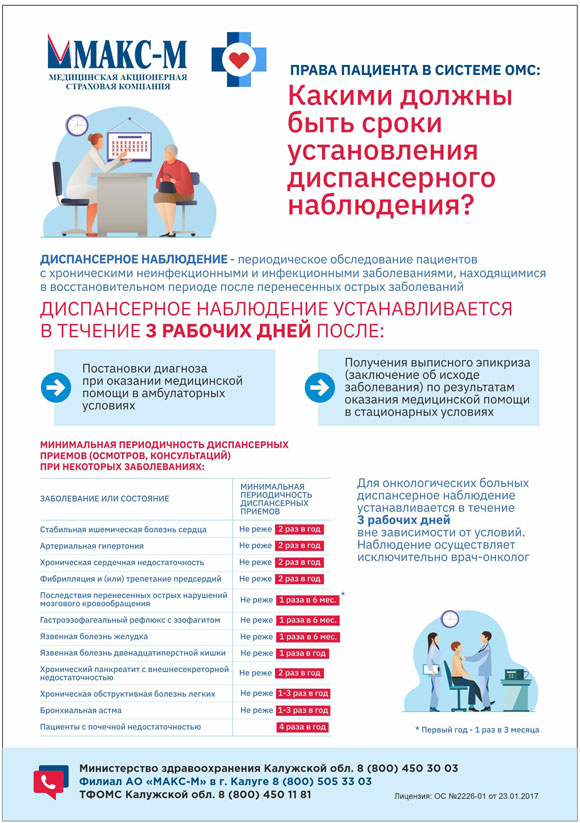 Филиал АО «МАКС-М» в г. Калуге информирует граждан о сроках установления диспансерного наблюдения.