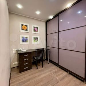 Вторая комната двухзонная с компьютерным столом одна половина, перегородка шкаф купе ( двухсторонний) и на второй стороне кровать евромакси с двумя тумбочками и выход на вторую лоджию.
