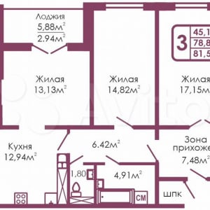 - Общая площадь: 81.6 м²