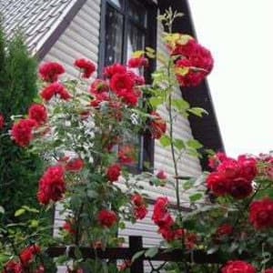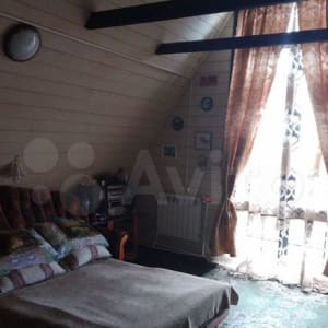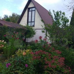 Дом 6х6м. Двухэтажный. Площадь около 64 метров. В доме имеется: газ, вода (своя скважина), туалет (септик топаз), газ, свет (3 фазы). Дом полностью отапливается газом, зимой очень тепло. Первый этаж: гостиная, кухня и небольшой коридор. На кухне: гарнитур, газовая плита и холодильник. На втором этаже жилая мансарда: большая спальня (с высоким окном 2.5 м) и туалетная комната. В туалетной комнате: душевая кабина, туалет, раковина, авт. стиральная машина. Из спальни открывается прекрасный вид на сад. На текущий момент в доме 5 спальных мест.