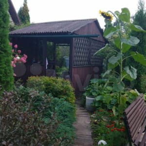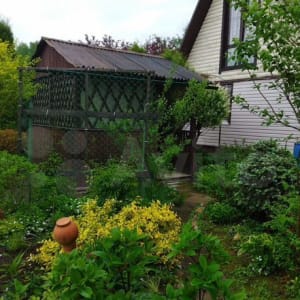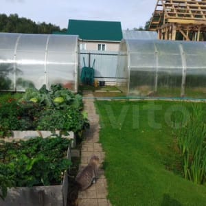 Площадь участка ~12 соток полностью обработанной земли. На участке много хвойников, цветущих кустарников и многолетних цветов. Две теплицы, аккуратные грядки, плодовые деревья и кустарники и много редких растений; газон, качели 2 шт, лавочки, дорожки, забор. В центре участка декоративный пруд с ивой. Можно ловить окуньков. Участок похож на уголок ботанического сада, очень ухоженный.